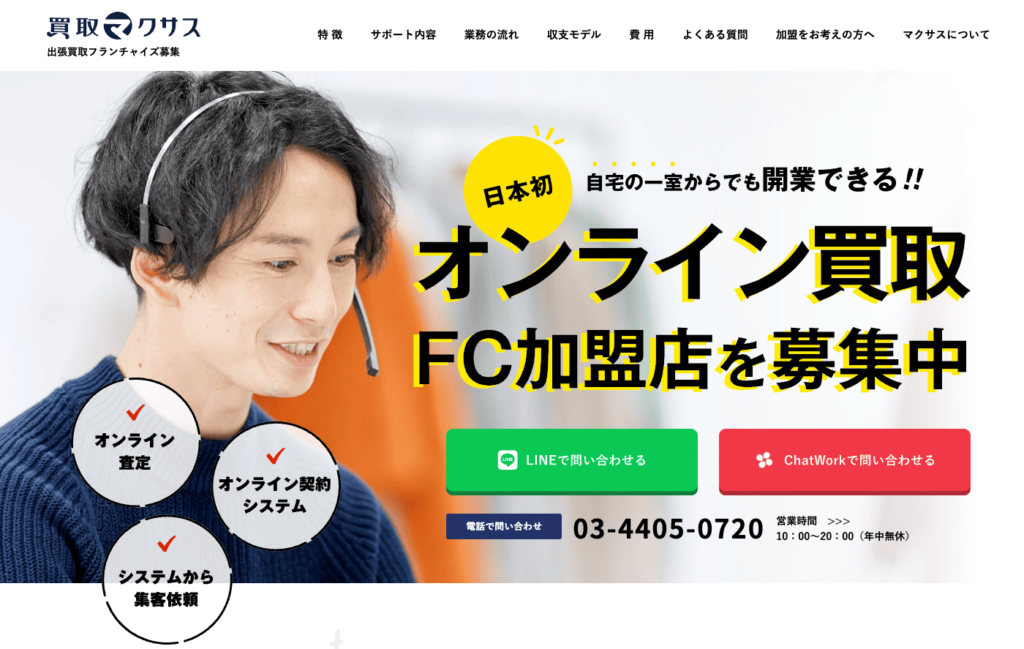買取マクサスの出張買取フランチャイズは、店舗不要で在庫リスクを抑えながら、自宅の一室からでも開業可能なビジネスモデルです。独自開発のオンライン査定システムや手厚い研修サポートにより、未経験者でも安心してスタートできます。さらに、WEB集客に強く、低コストで効率的な反響獲得が可能です。