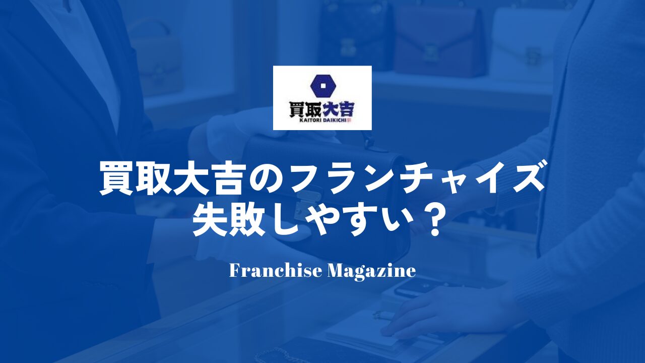 買取フランチャイズの中でも注目度の高いのが、「買取大吉のフランチャイズです。買取フランチャイズを検討するうえで外せない同社のフランチャイズは失敗しやすいのでしょうか?