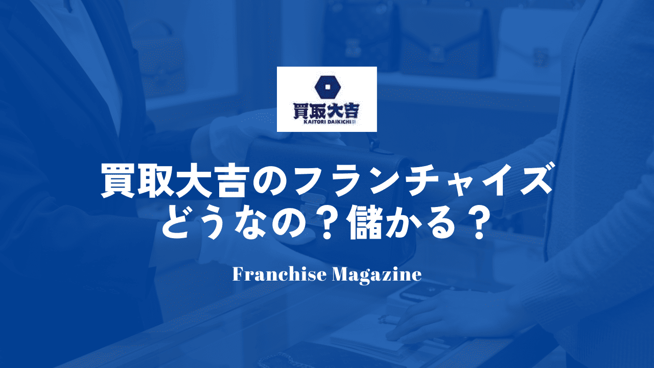 比較的初期費用が低いのに収益性が高いため、フランチャイズ加盟で注目度が高い買取専門店。そんな買取専門店の中でも、近年急成長を遂げているのが「買取大吉」です。
